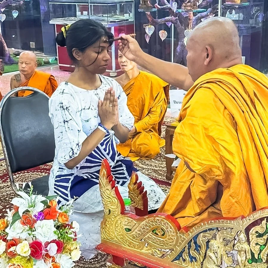 At Fighters Ink, we extend the opportunity to all our clients to receive a Sak Yant master's blessing at the nearby temple. While many individuals choose solely to acquire the tattoo, bypassing the blessing aspect for different reasons, we generally suggest that recipients of a Sak Yant consider visiting the Monk for a blessing.